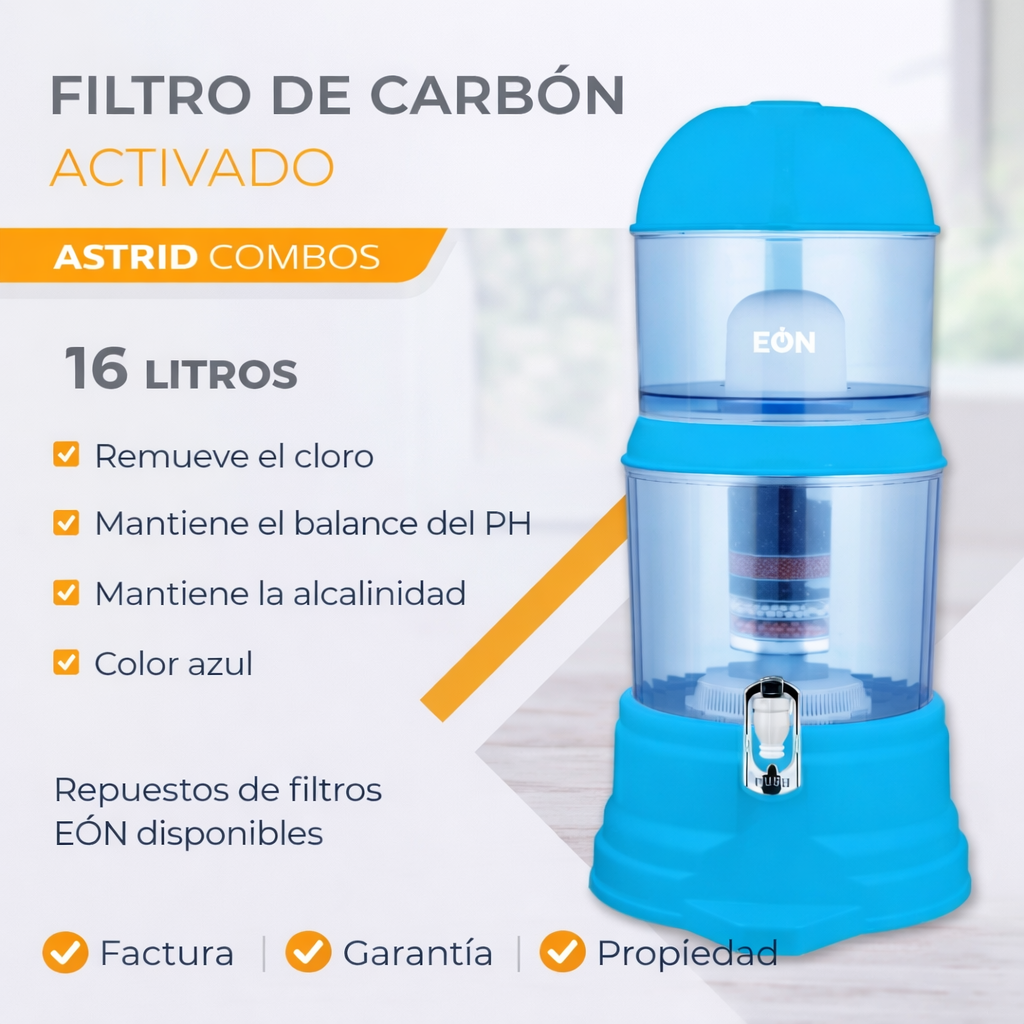 Filtro de agua azul de 16 litros